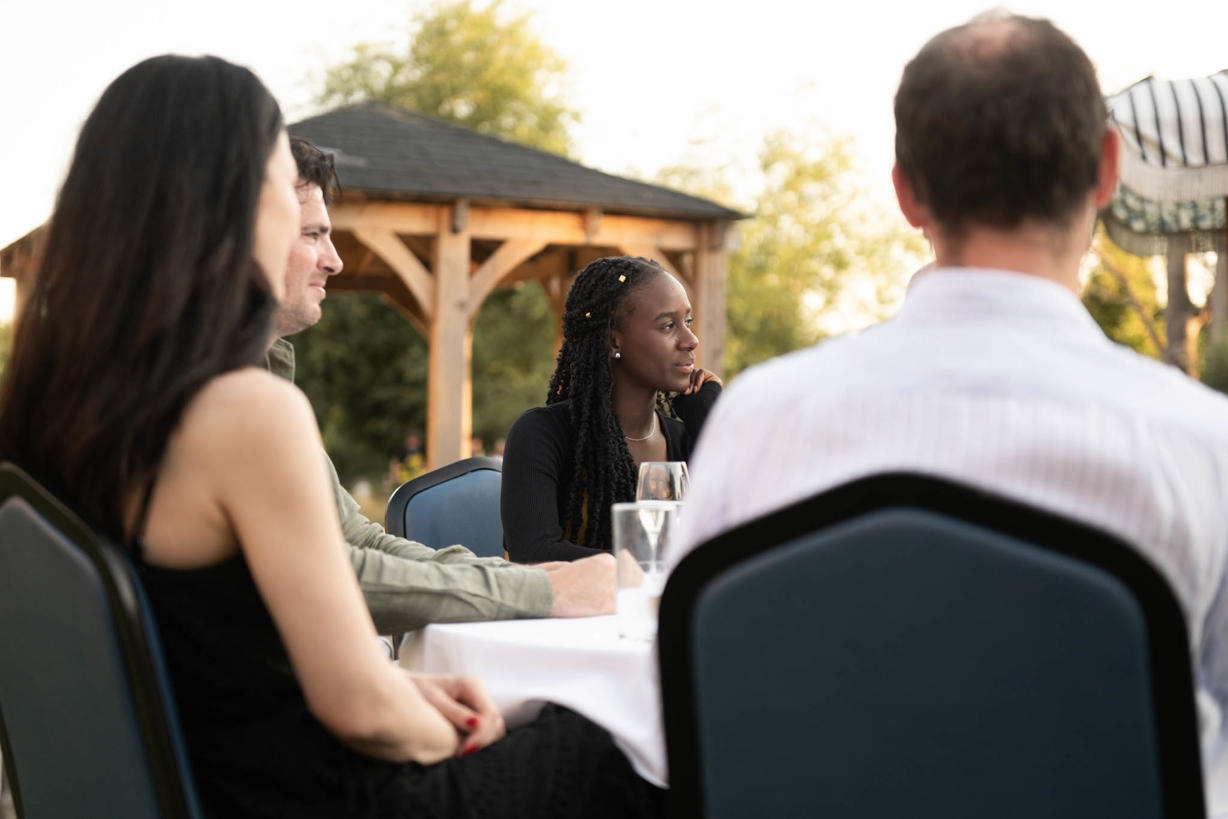 Set against the stunning backdrop of the River Cam, guests enjoyed a beautiful summer sunset, the soothing melodies of a harpist, and the relaxed company of friends, colleagues, and business partners. The tranquil atmosphere, vibrant conversation, and picturesque setting made it a night to remember.