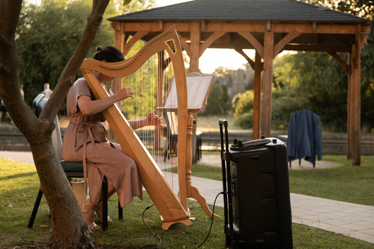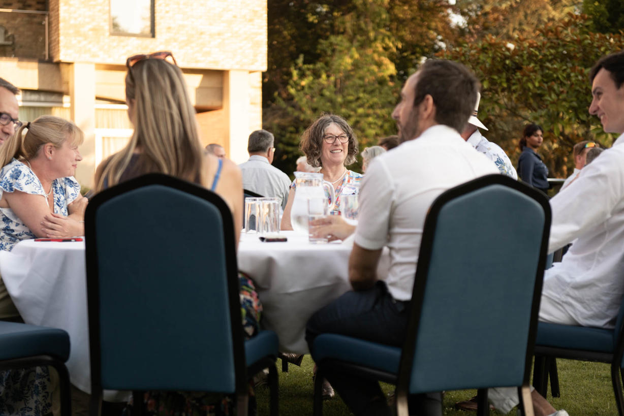 Set against the stunning backdrop of the River Cam, guests enjoyed a beautiful summer sunset, the soothing melodies of a harpist, and the relaxed company of friends, colleagues, and business partners. The tranquil atmosphere, vibrant conversation, and picturesque setting made it a night to remember.